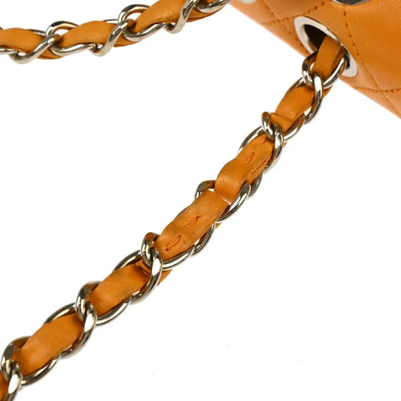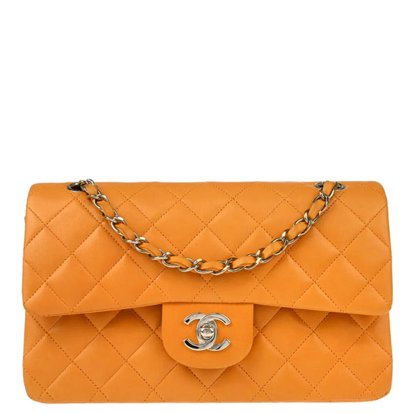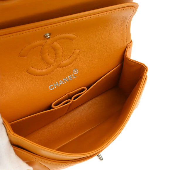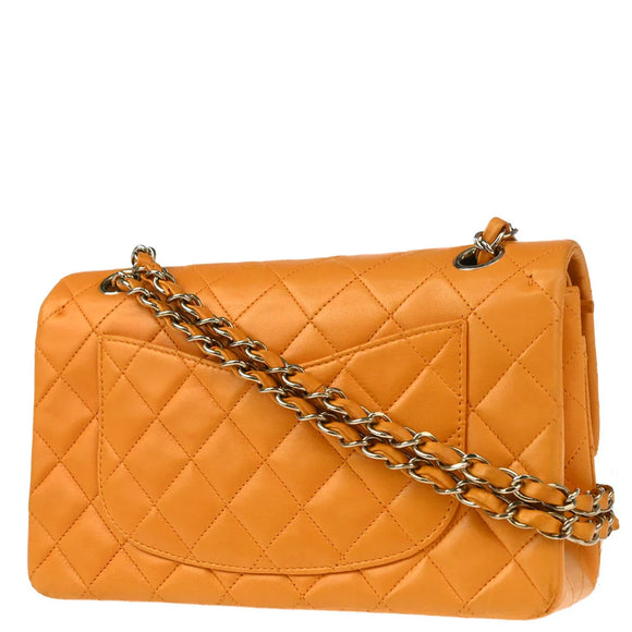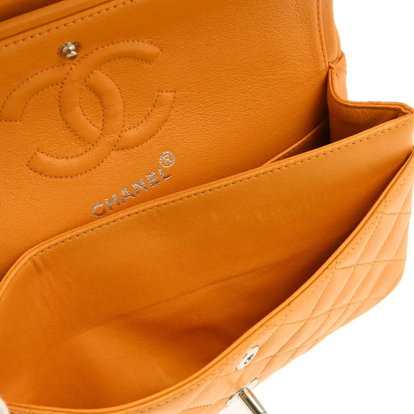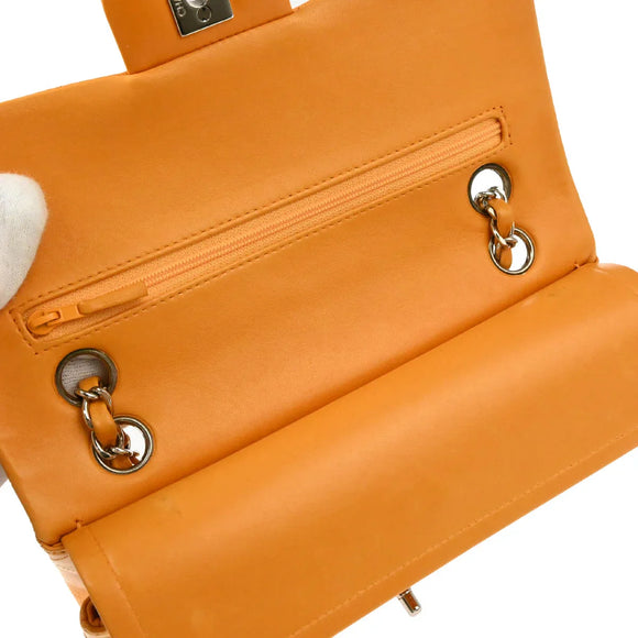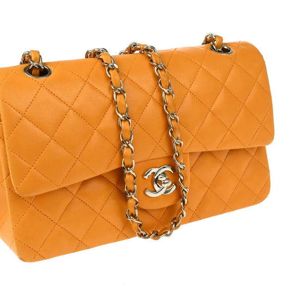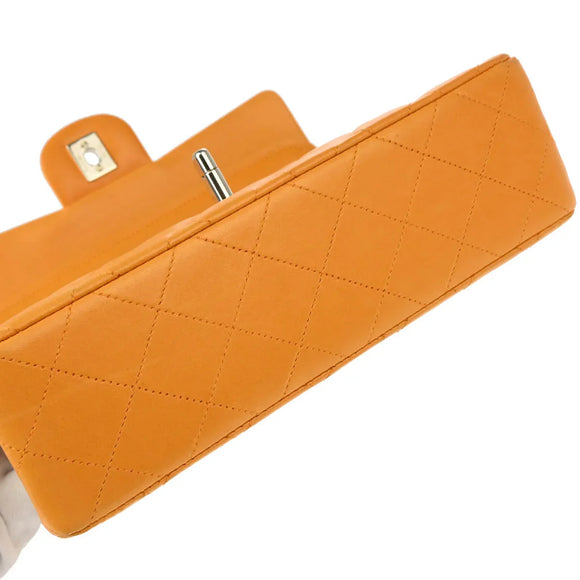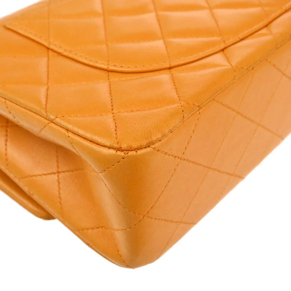 Chanel 1997-1999 Orange Lambskin Small Classic Double Flap Shoulder Bag