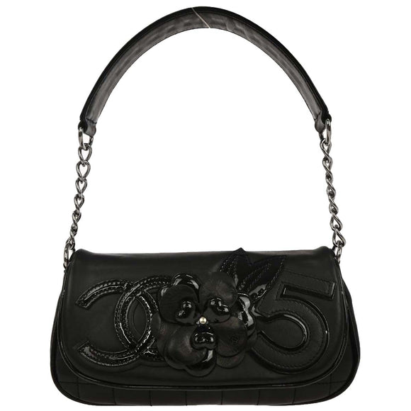 Chanel Black Lambskin Choco Bar Camellia Handbag