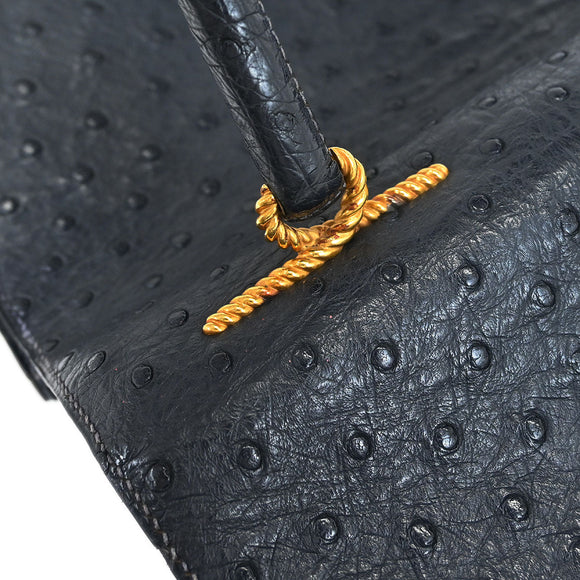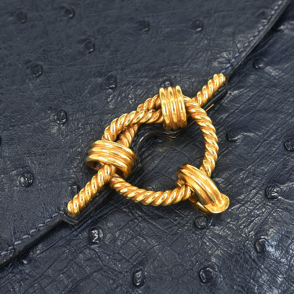 Hermes * 1964 Blue Indigo Ostrich Cordeliere Handbag