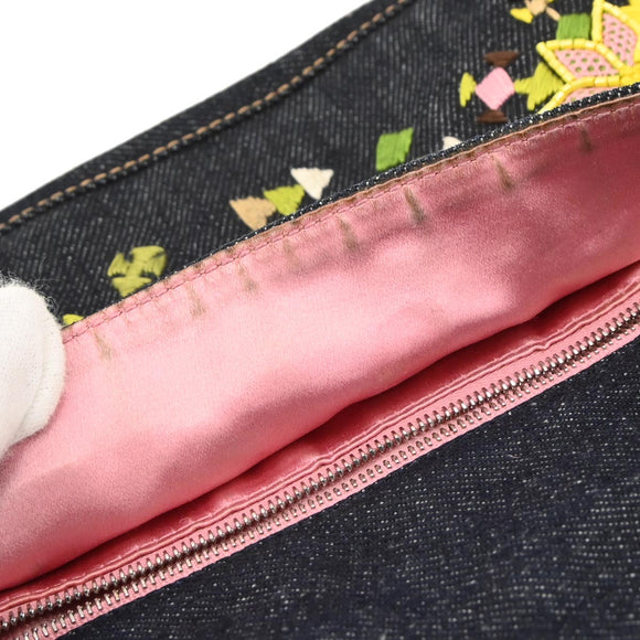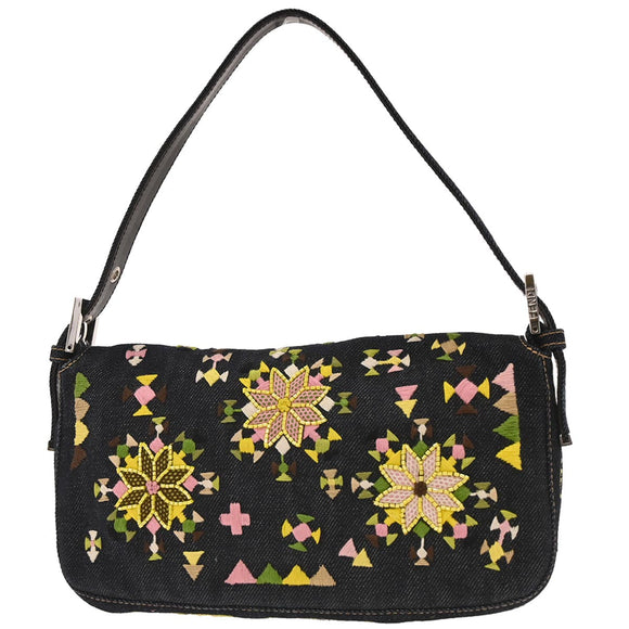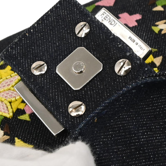 Fendi Navy Denim Beaded Baguette Handbag