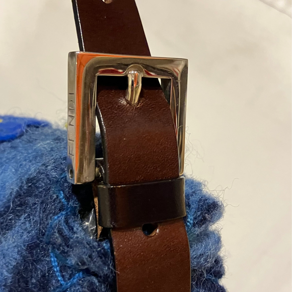 Fendi Blue Felt Patchwork Baguette Handbag
