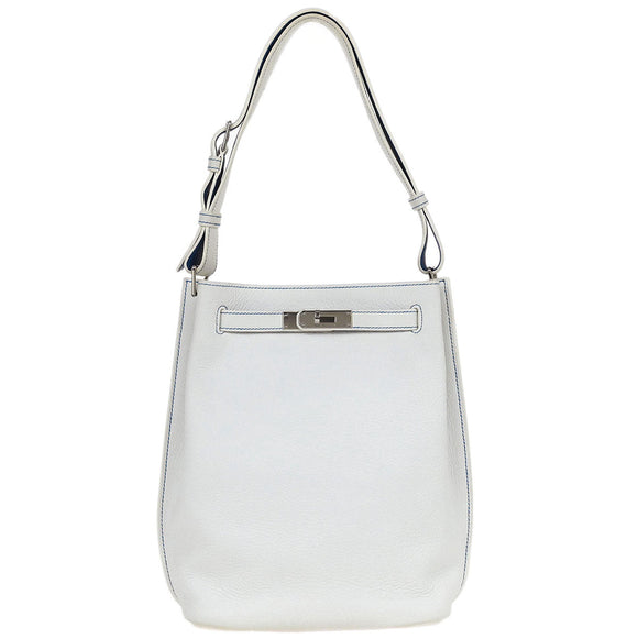 Hermes White Mykonos Taurillon Clemence So Kelly 22 Shoulder Bag