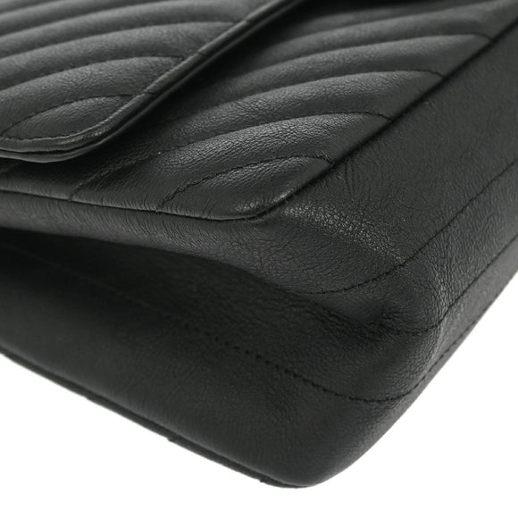 Chanel Black Calfskin 2.55 Chevron Classic Double Flap Shoulder Bag