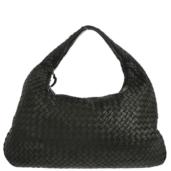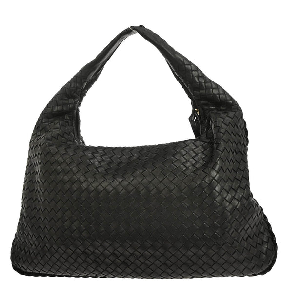 Bottega Veneta Black Lambskin Intrecciato Hobo Handbag