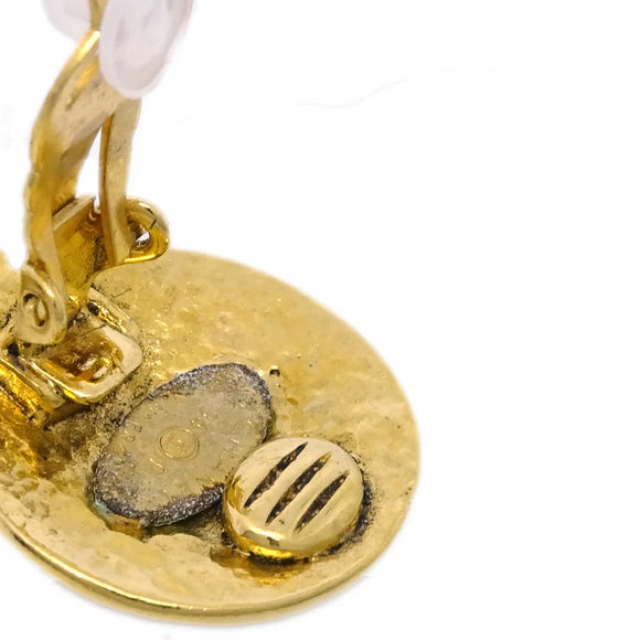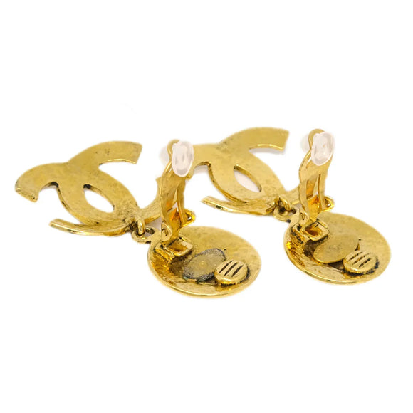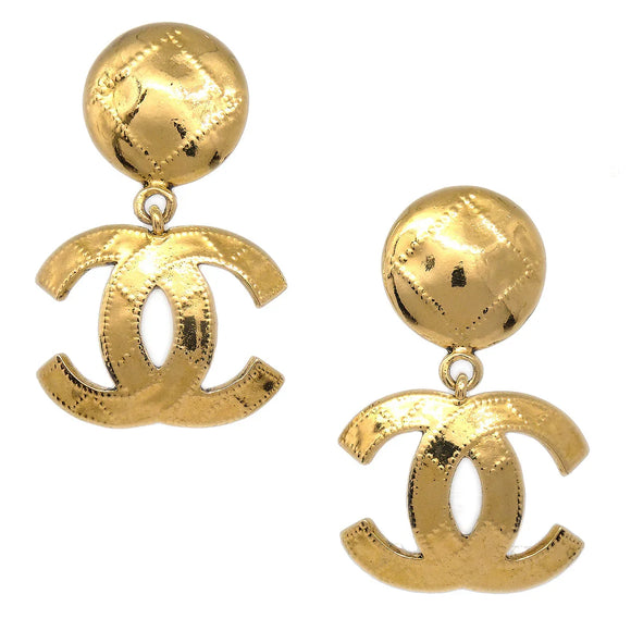Chanel 1994 Quilted CC Dangle Earrings Clip-On Gold Small