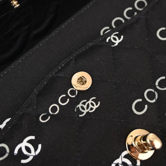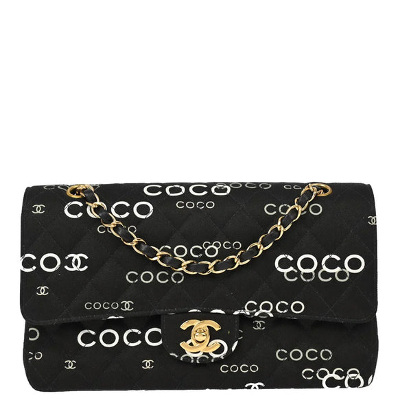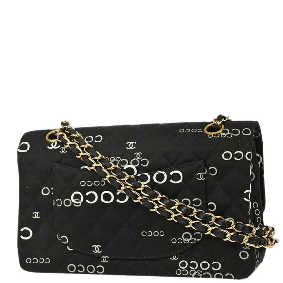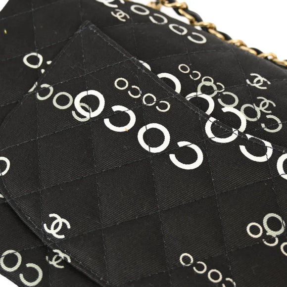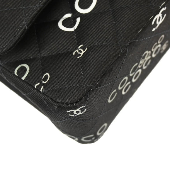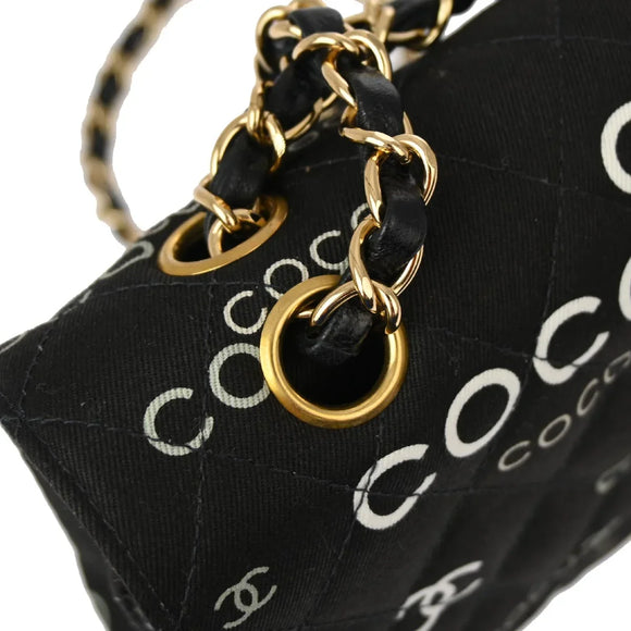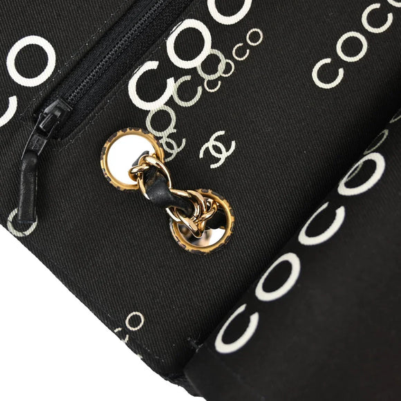 Chanel 2001-2003 Black Canvas COCO Medium Classic Double Flap Shoulder Bag