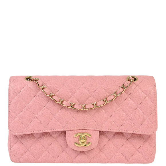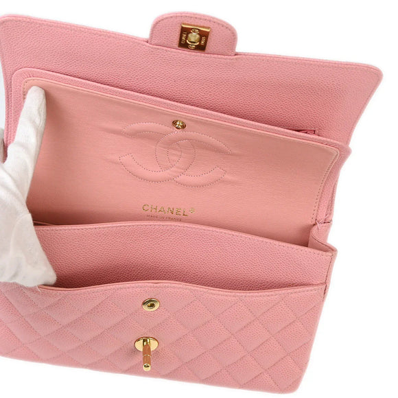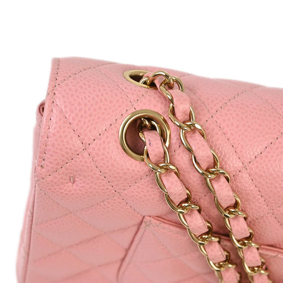 Chanel 2004-2005 Pink Caviar Medium Classic Double Flap Shoulder Bag