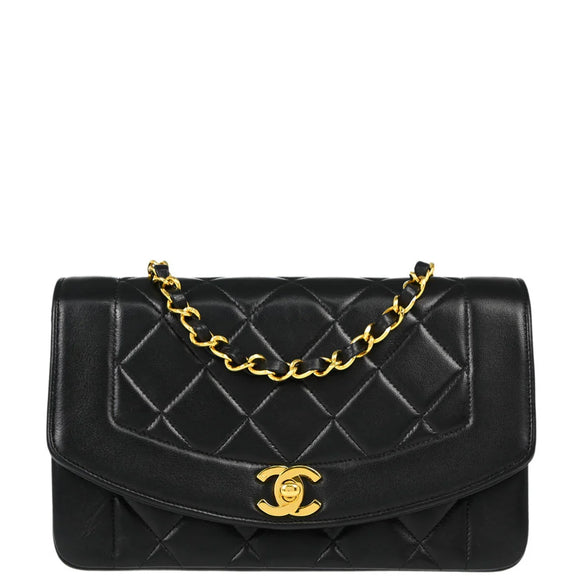 Chanel 1996-1997 Black Lambskin Small Diana Shoulder Bag