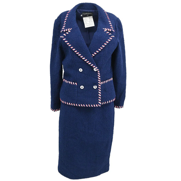 Chanel 1994 Setup Suit Jacket Skirt Navy #38