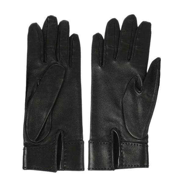 Hermes Black Leather Gloves #6 1/2 Small Good