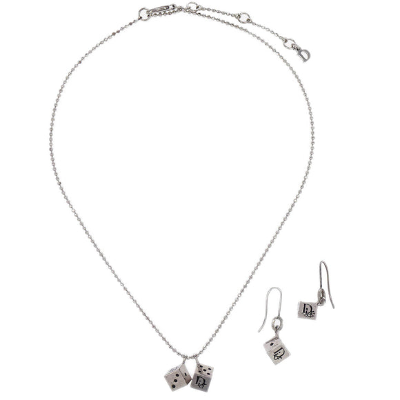 Christian Dior 2set Necklace Piercing Earrings Dice Silver