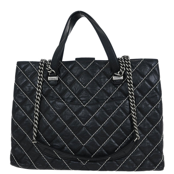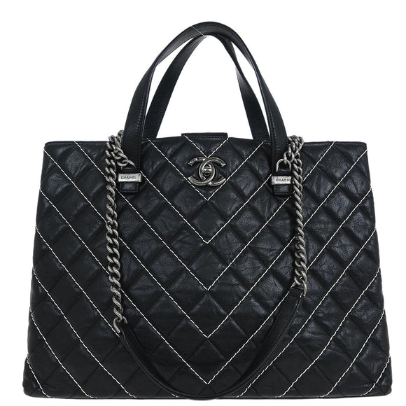 Chanel 2017 Black Calfskin Chevron Tote Bag