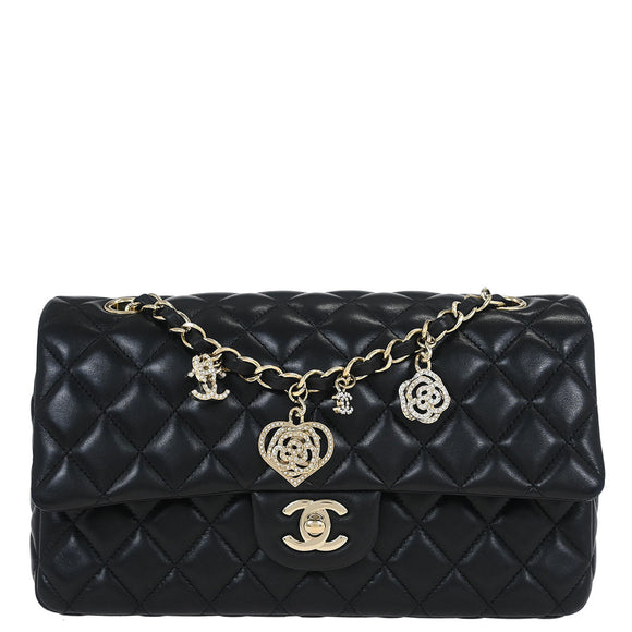 Chanel 2014 Black Lambskin Single Flap Shoulder Bag