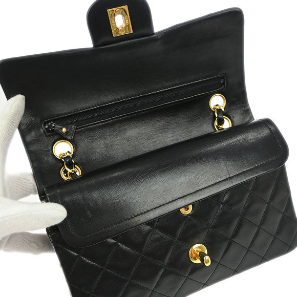 Chanel 1989-1991 Black Lambskin Small Classic Double Flap Shoulder Bag