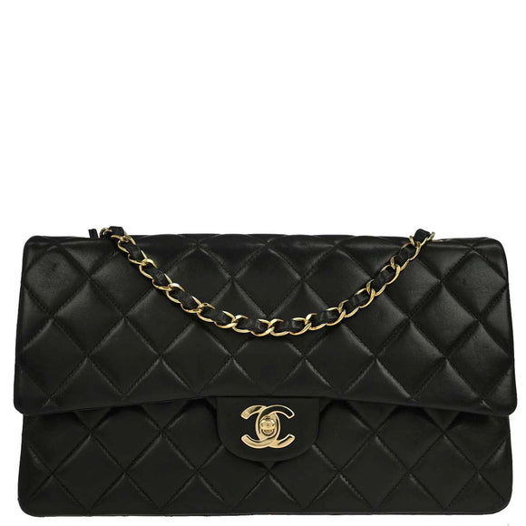 Chanel 2000-2001 Black Lambskin Medium Classic Double Flap Shoulder Bag