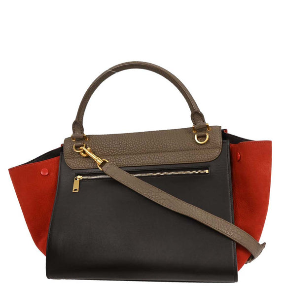 Celine Black Red Brown Leather Trapeze 2way Shoulder Handbag