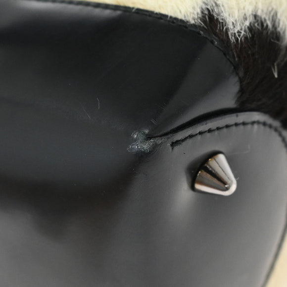Christian Dior * Black White Fur Medium Lady Dior 2way Shoulder Handbag