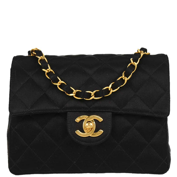 Chanel Black Satin Mini Classic Square Flap Shoulder Bag