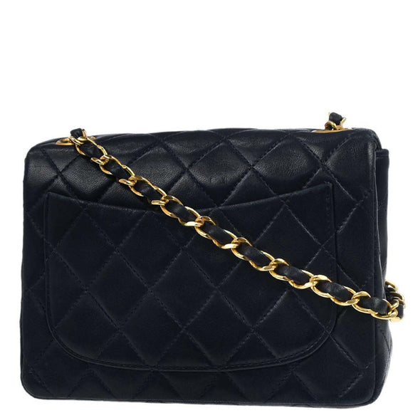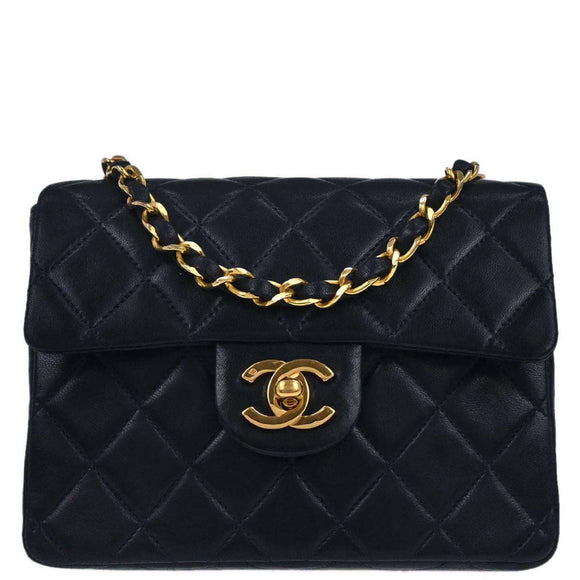 Chanel 1989-1991 Navy Lambskin Mini Classic Square Flap Shoulder Bag 17