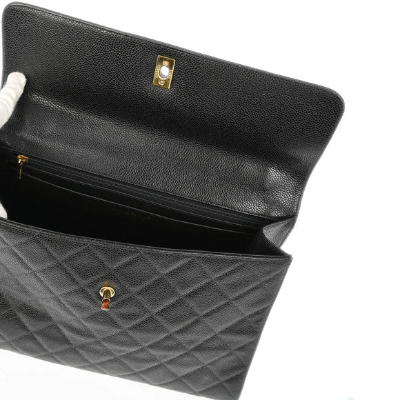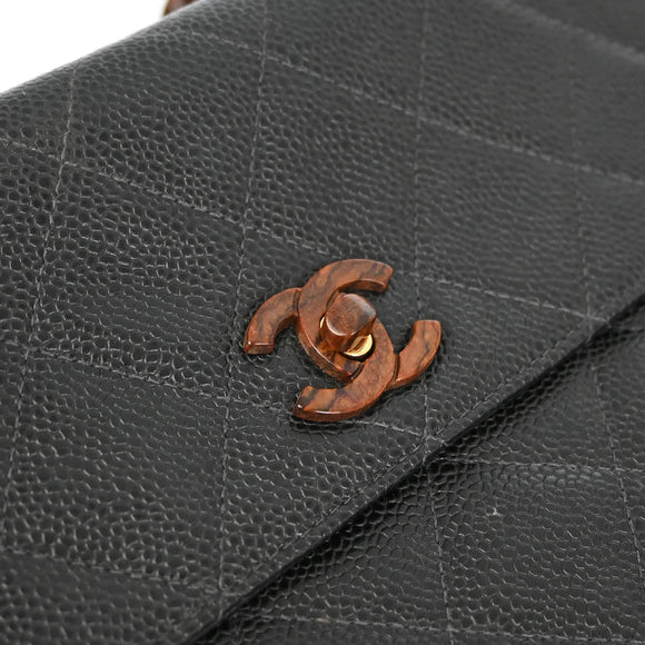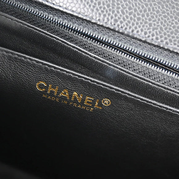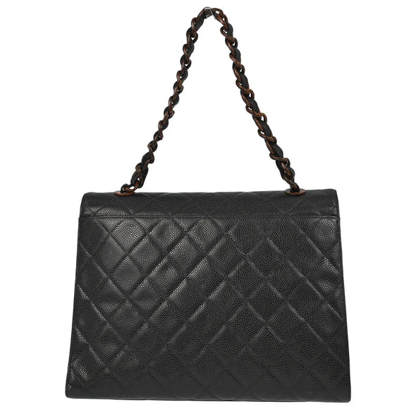 Chanel 2000-2001 Black Caviar Straight Flap Chain Handbag