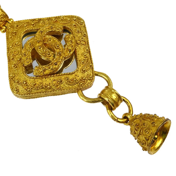 Chanel 1994 Bell Mirror Chain Pendant Necklace Gold 94A