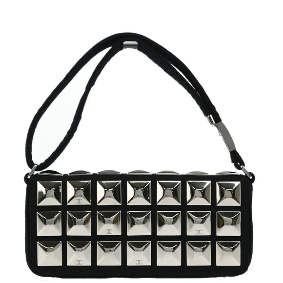 Chanel 2003-2004 Black Cotton Ice Cube Shoulder Bag