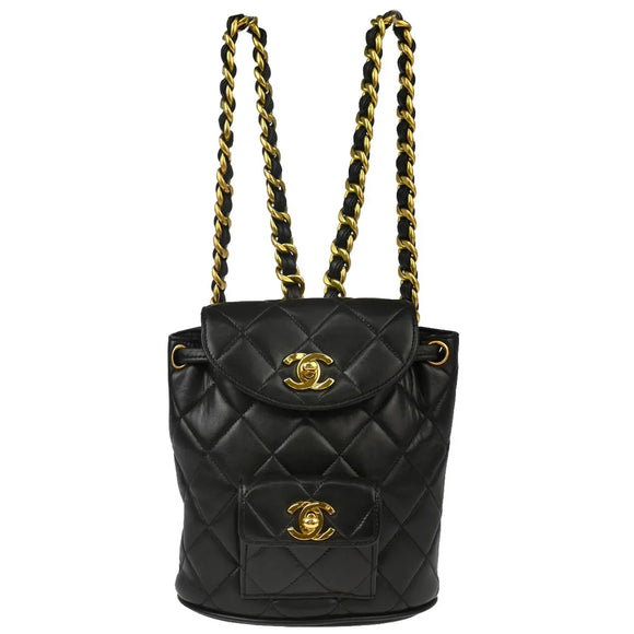 Chanel 1991-1994 Black Lambskin Duma Backpack Small