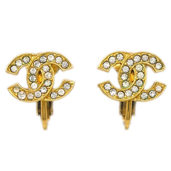 Chanel Gold CC Earrings Rhinestone Clip-On 2092