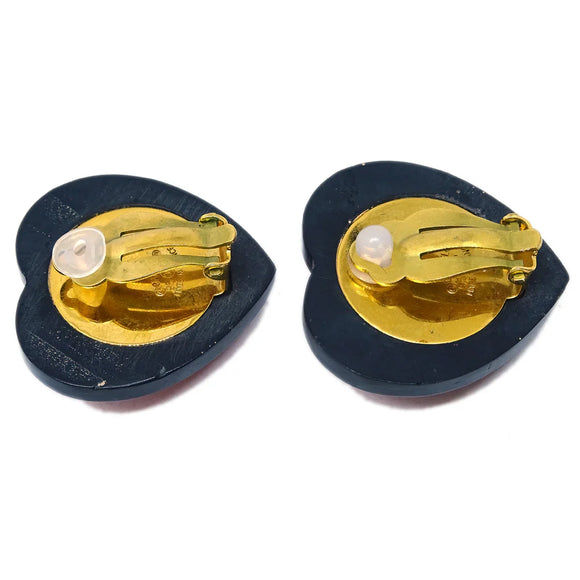 Chanel Heart Rhinestone Earrings Clip-On Red 95P