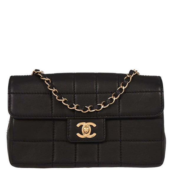 Chanel 2002-2003 Black Lambskin Choco Bar Shoulder Bag