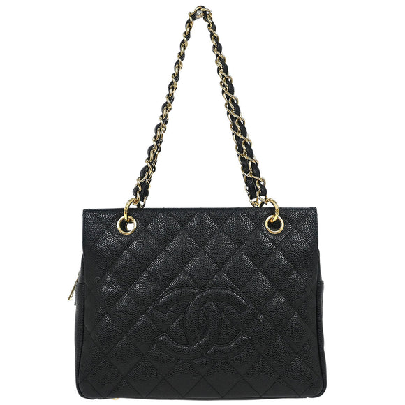 Chanel 2003-2004 Black Caviar Petite Timeless Tote PTT Chain Handbag