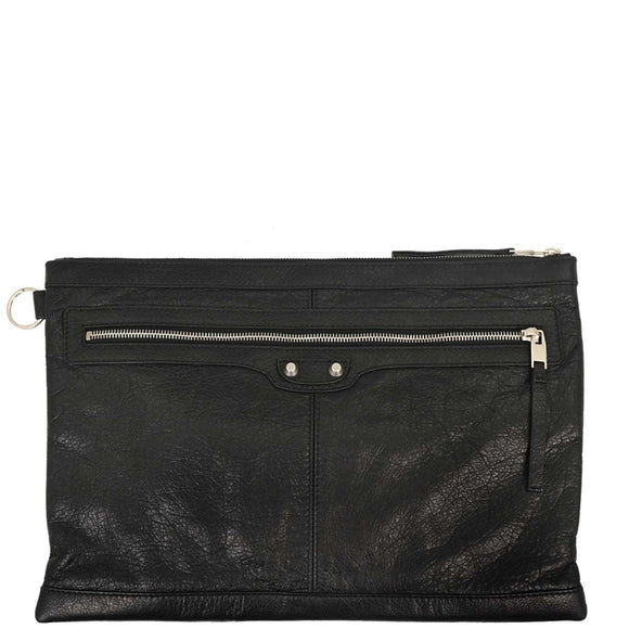 Balenciaga Black Lambskin Clip L Clutch Bag