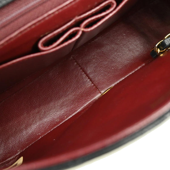 Chanel 1989-1991 Black Lambskin Turnlock Small Full Flap Shoulder Bag
