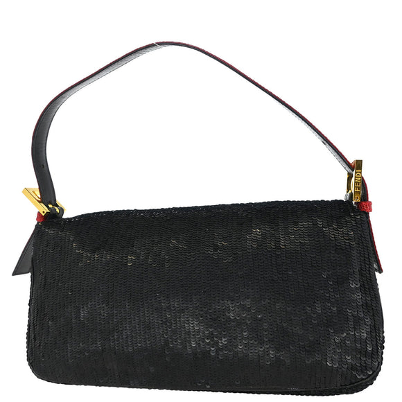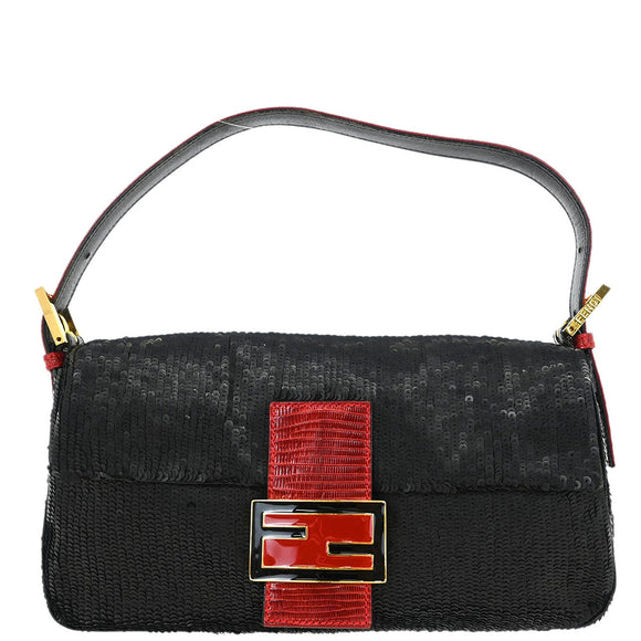Fendi * Black Lizard Sequins Baguette Handbag