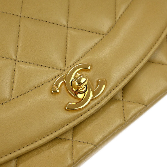 Chanel 1991-1994 Beige Lambskin Small Diana Shoulder Bag