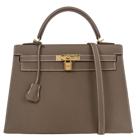 Hermes Etoupe Gray Epsom Kelly 32 Sellier 2way Shoulder Handbag