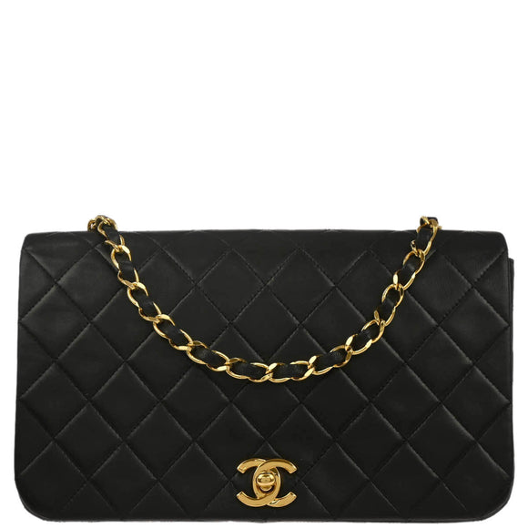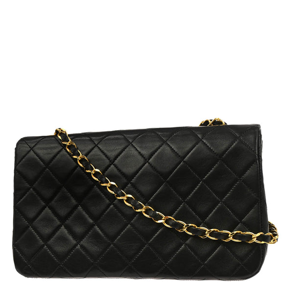 Chanel 1989-1991 Black Lambskin Turnlock Small Full Flap Shoulder Bag