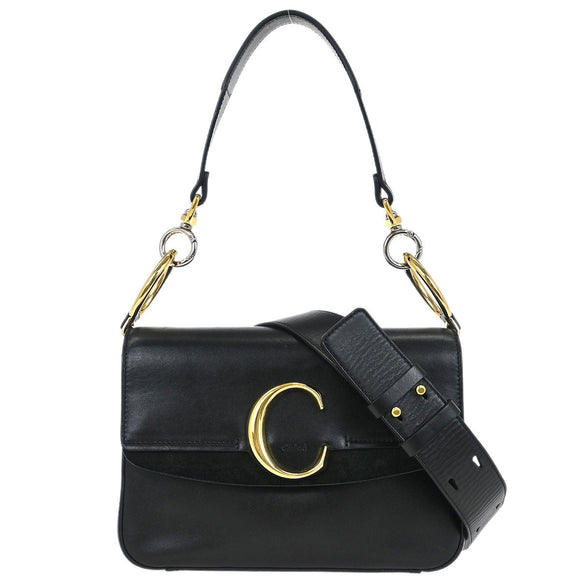 Chloe Black Leather C 2way Shoulder Handbag