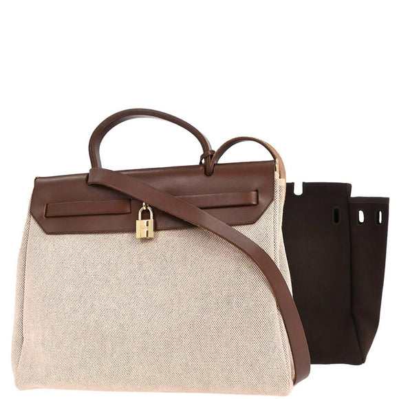 Hermes Beige Brown Toile H Officier Herbag PM 2 in 1 Handbag