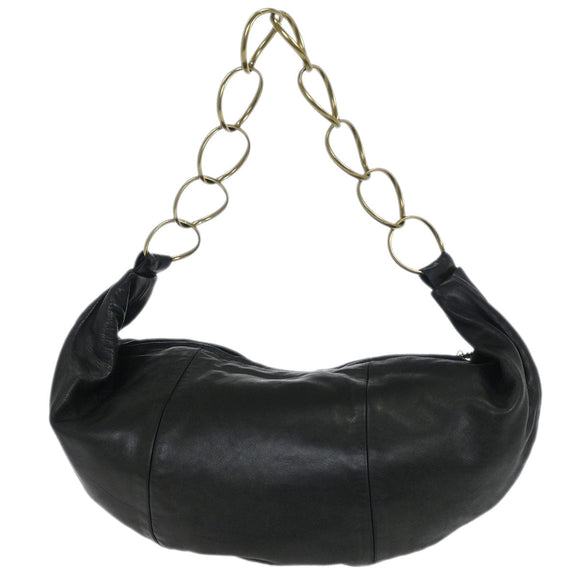 Chanel 2001-2003 Black Lambskin Half Moon Ring Chain Hobo Handbag