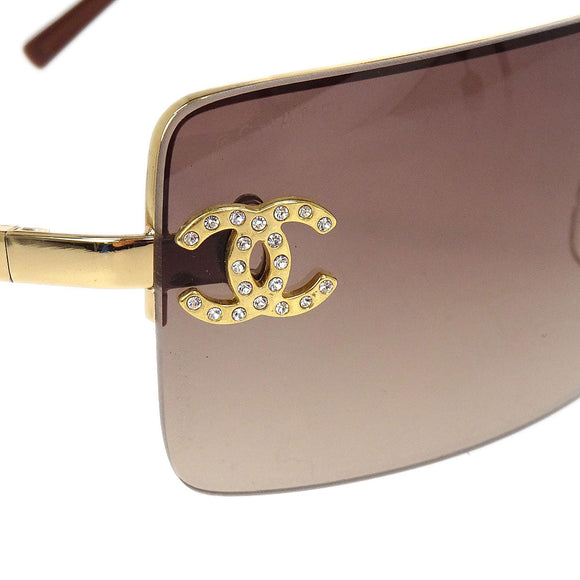 Chanel Sunglasses Eyewear Brown Rhinestone 62□15 Small Good