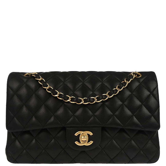 Chanel Black Lambskin Medium Classic Double Flap Shoulder Bag