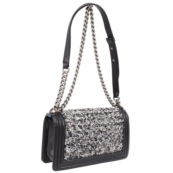 | Medium Boy Chanel Black Tweed Lambskin Double Chain Shoulder Bag | |