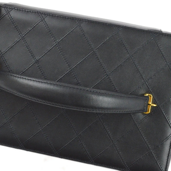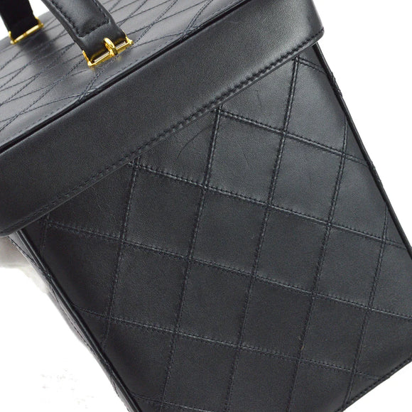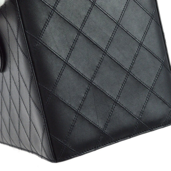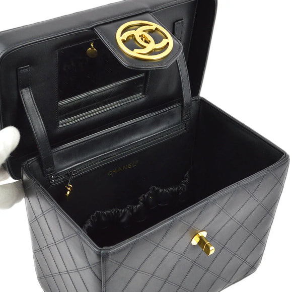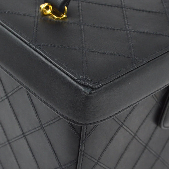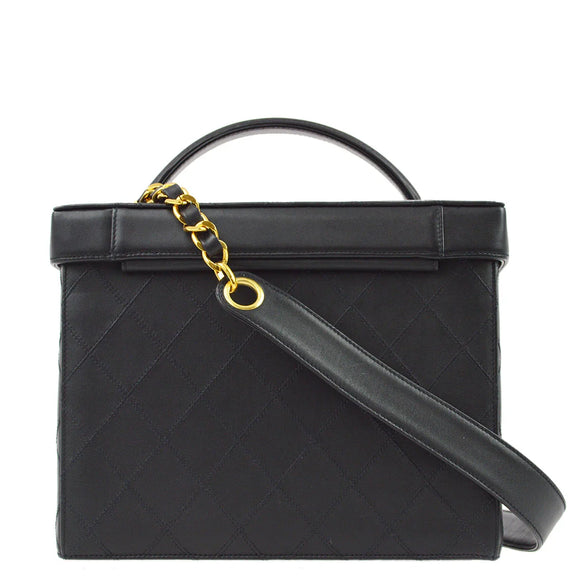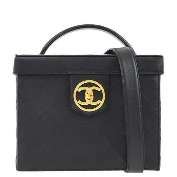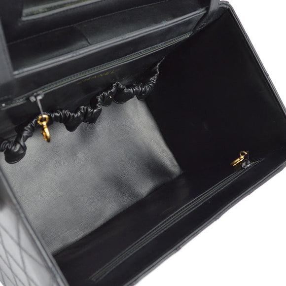 Chanel 1994-1996 Black Lambskin Bicolore Vanity 2way Shoulder Handbag