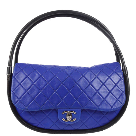 Chanel 2013-2014 Blue Black Lambskin Large Hula Hoop Handbag