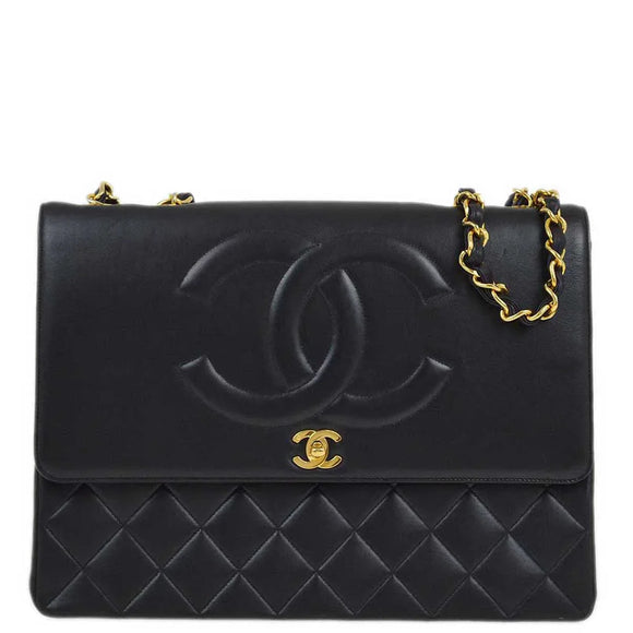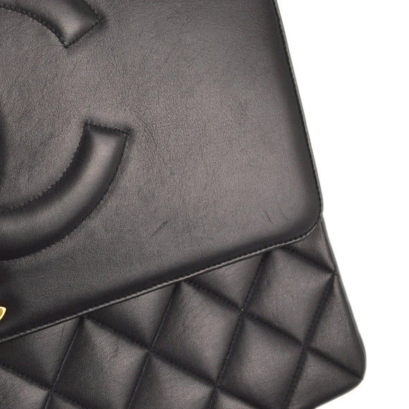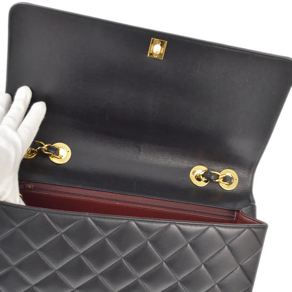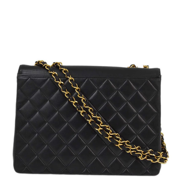 Chanel 1991-1994 Black Lambskin Classic Flap Maxi Jumbo Chain Shoulder Bag