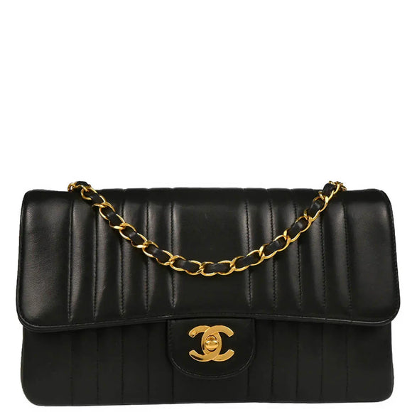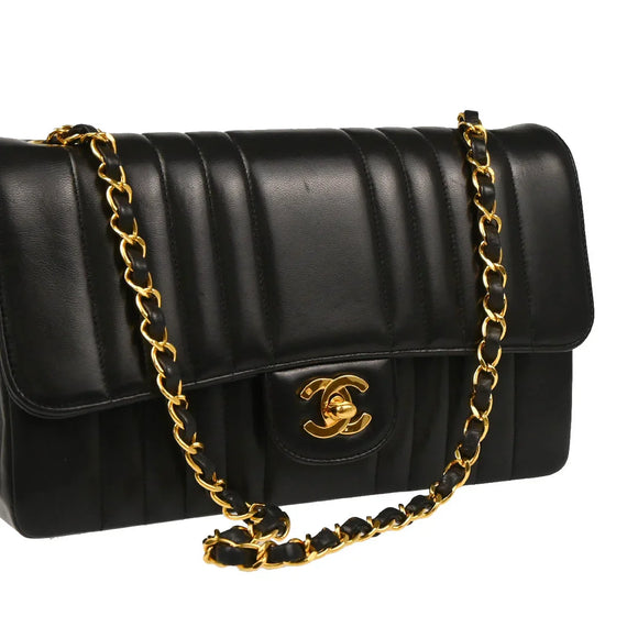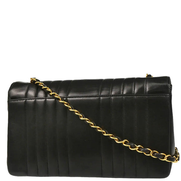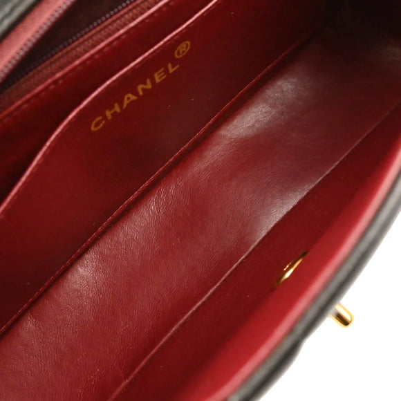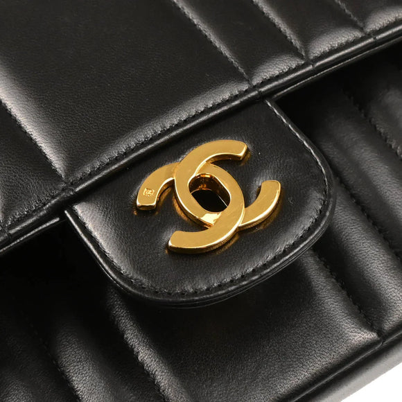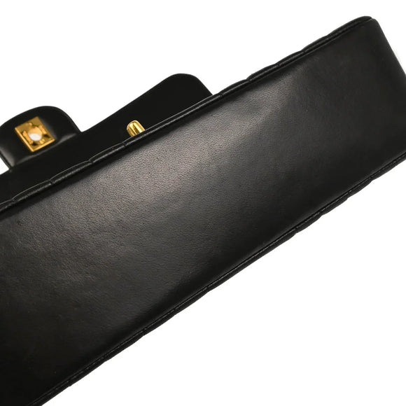 Chanel 1991-1994 Black Lambskin Mademoiselle Single Flap Shoulder Bag