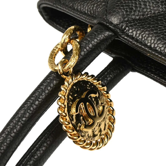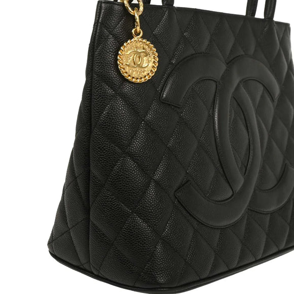 Chanel Black Caviar Medallion Tote Handbag