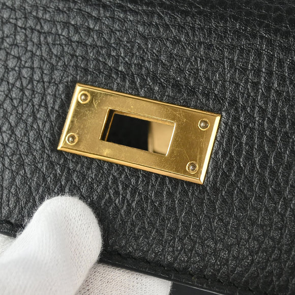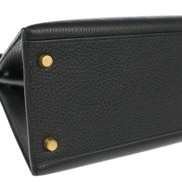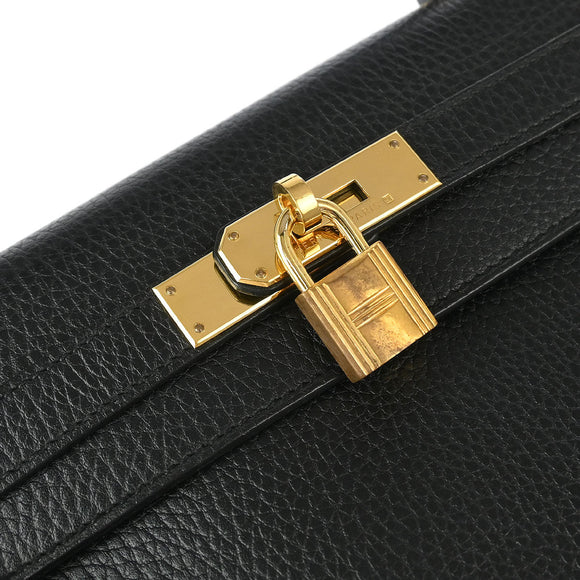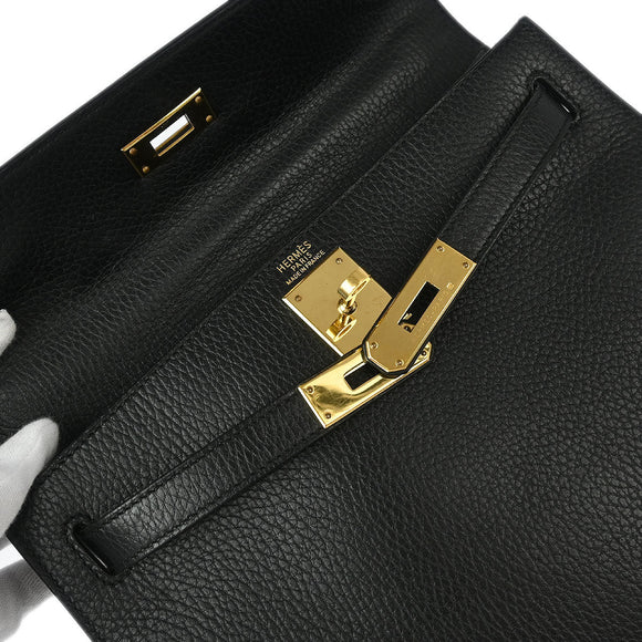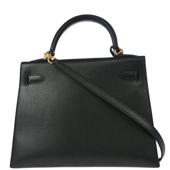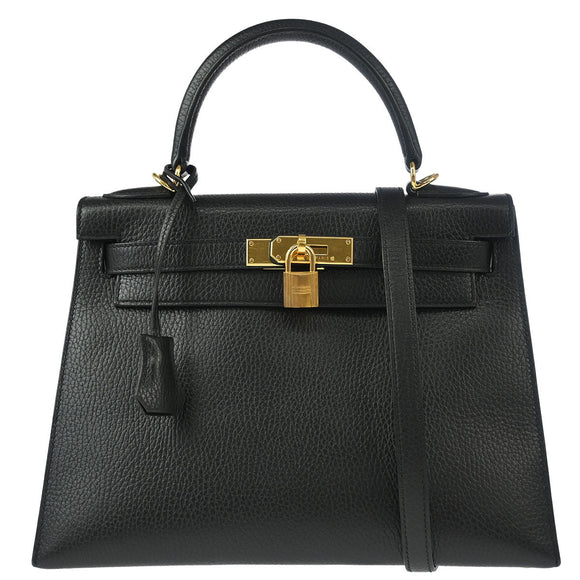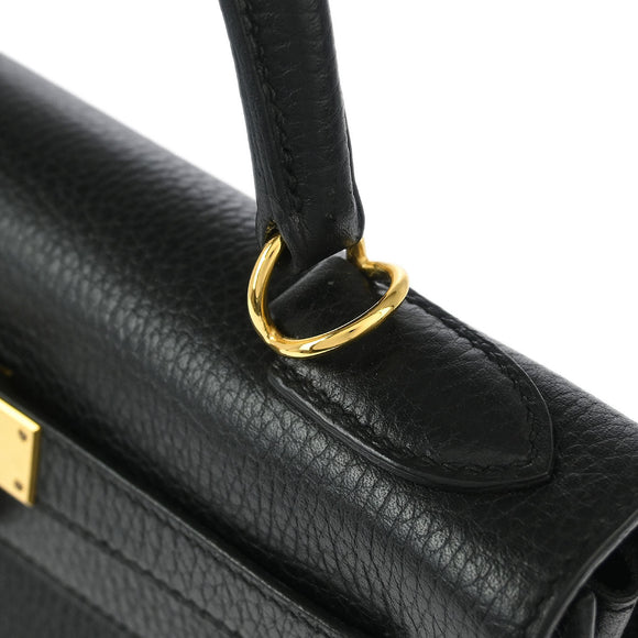 Hermes 2001 Black Ardennes Kelly 28 Sellier 2way Shoulder Handbag