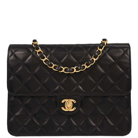 Chanel 2004-2005 Black Lambskin Turnlock Small Half Flap Shoulder Bag